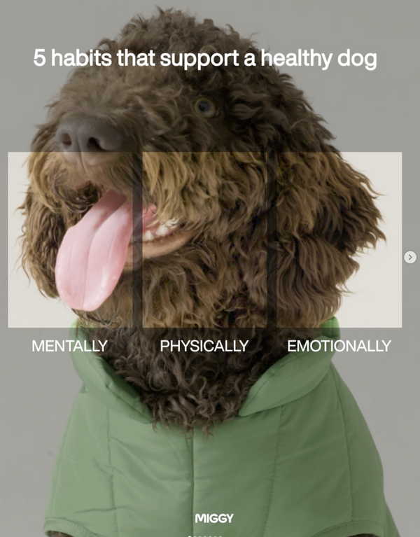 MIGGY is a daily, longevity-focused supplement designed to support your dog's overall health with one simple scoop a day. It helps fill common nutritional gaps while supporting digestion, joints, skin, coat, energy, and long-term vitality.